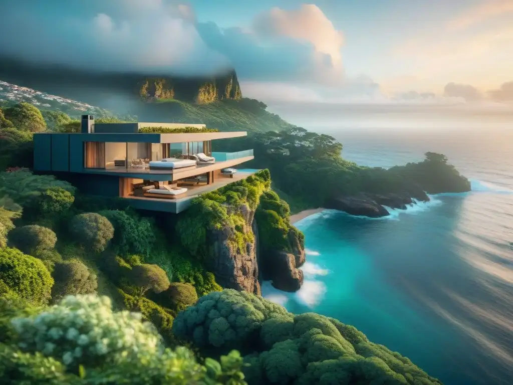 Propiedad costera en acantilado, destacando la belleza y riesgos al comprar propiedades costeras