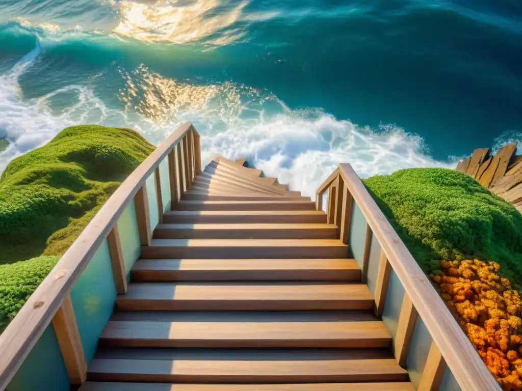 Diseño de escalera marítima inspirado en el océano con ambiente sereno y vista al mar