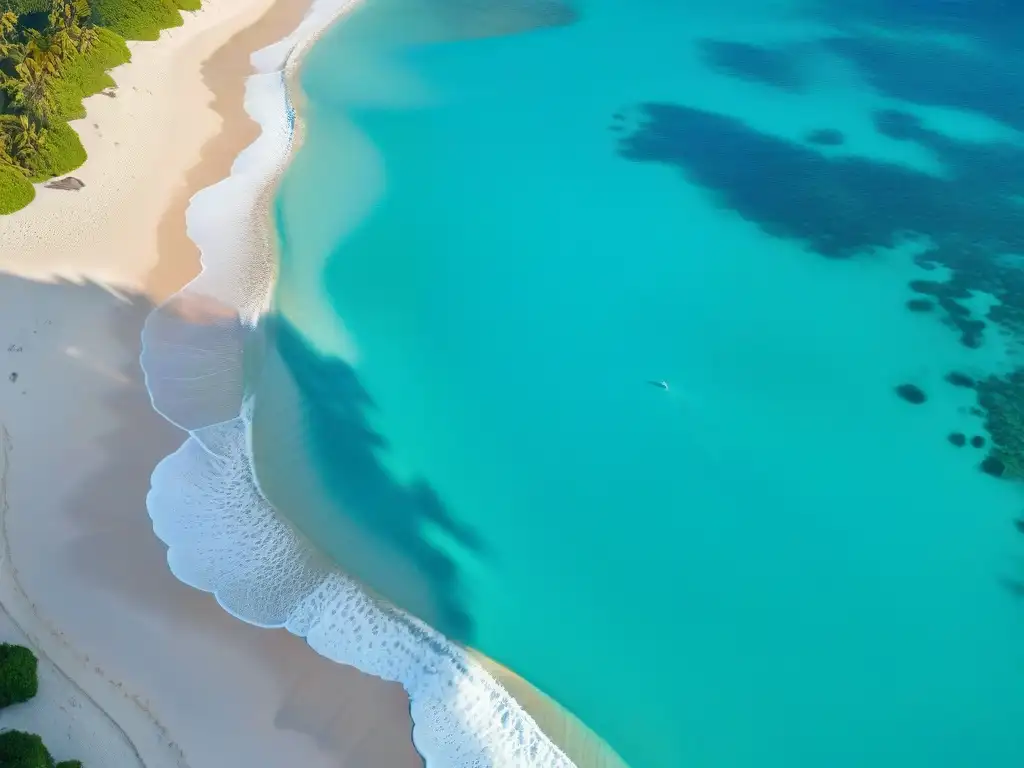 Vista aérea de una costa paradisíaca con aguas turquesa y playas de arena blanca