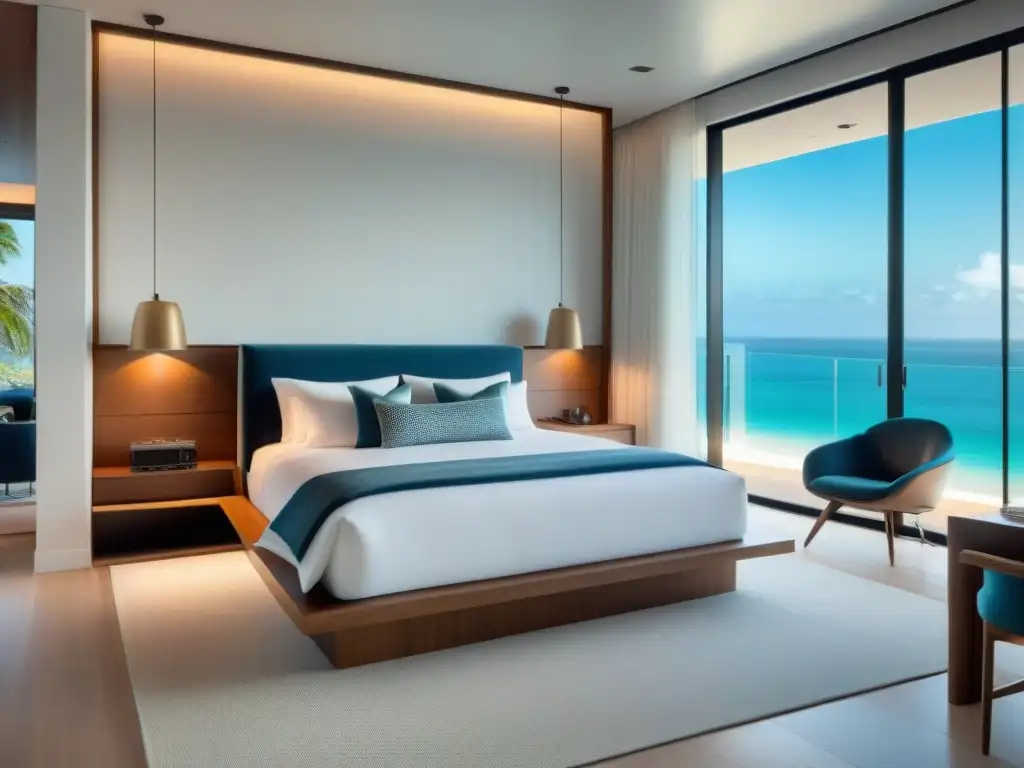 - Tecnología y entretenimiento en un dormitorio costero de alta gama