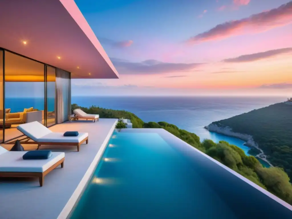 Villa de lujo en acantilado con vistas al Mediterráneo al atardecer